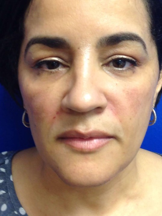 This patient was injected with 1cc of restylane filler by Dr. Anita Sabharwal to help diminish the nasal labial folds forming around her smile lines.