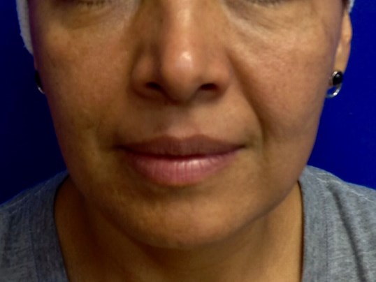 Before and after Restylane syringe for the nasal labial folds to help diminish those lines.